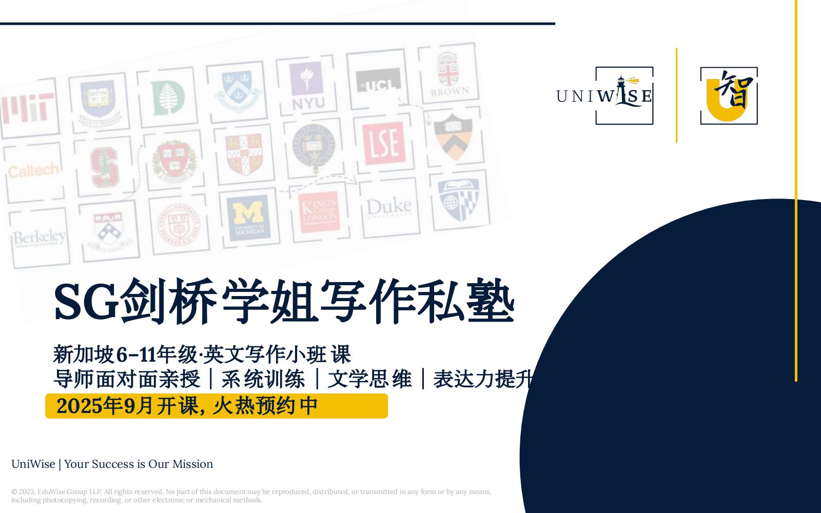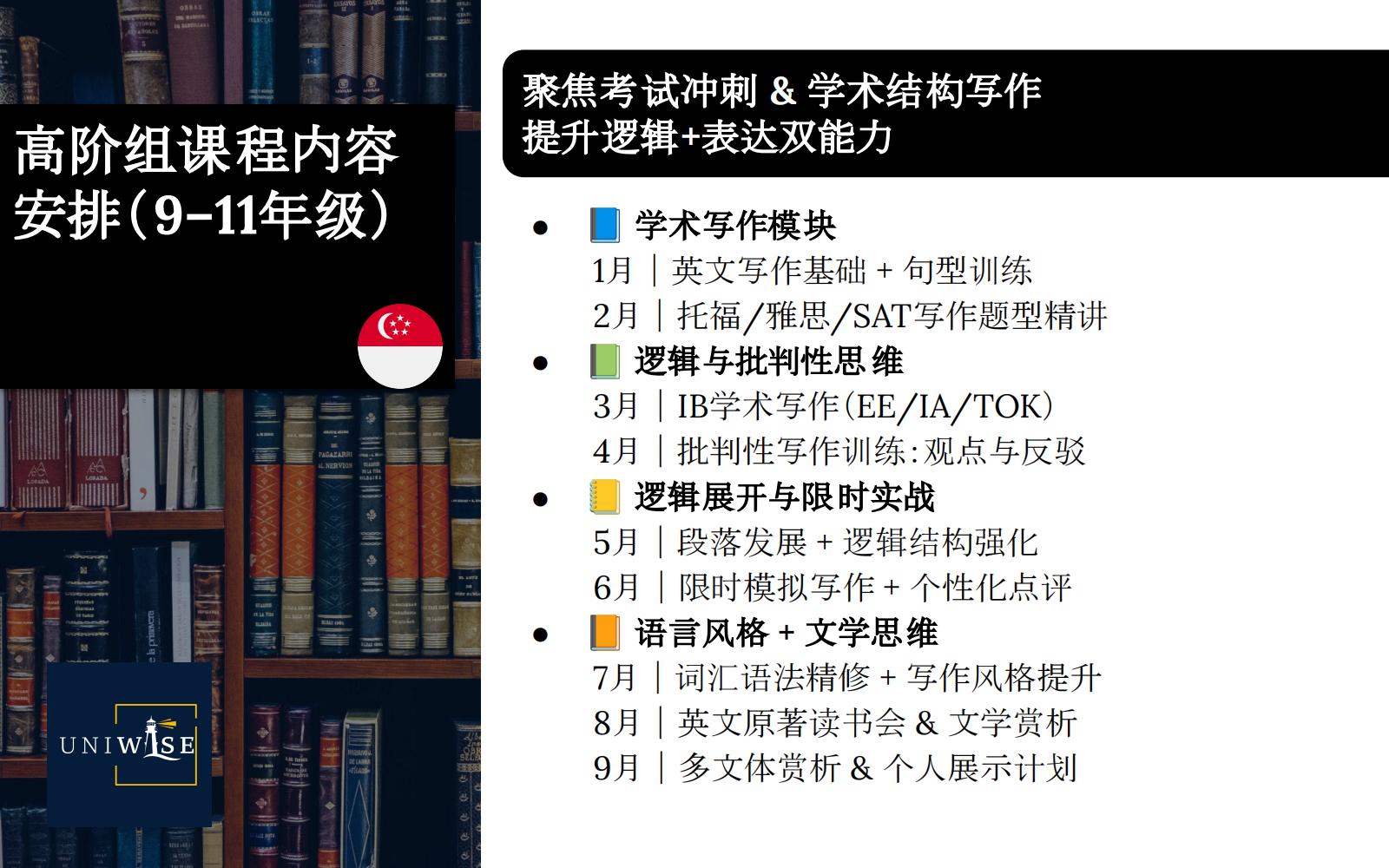 课程价格:4299 SGD/年(9个月,共36节1小时课程)