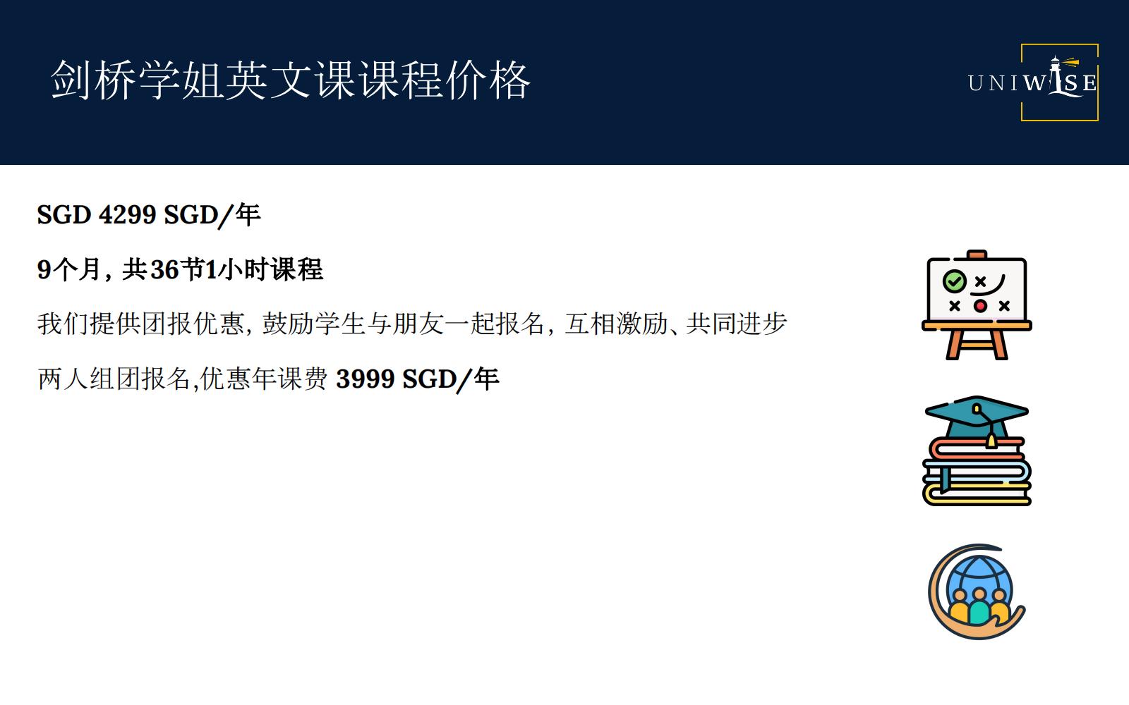 两人组团报名,优惠年课费 3999 SGD/年